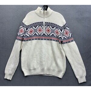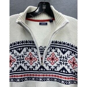 IZOD Sweater Mens XL Nordic Fair Isle 1/4 Zip Pullover Winter Knit Pattern