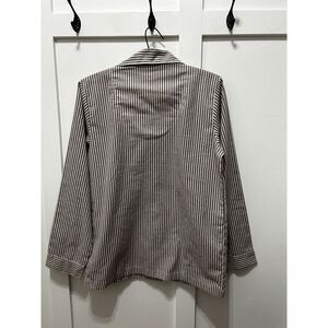 IZOD Sz M Blue Striped Button-Up Pajama Sleep Shirt Nightgown gray and white