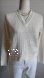 Creamy white cable knit v-neck with soft green stripe at collar.