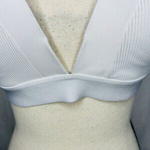 IZOD Women’s Padded Adjustable Strap White Bra Size 38C Ribbed Fabric, 92% polyester, 8% spandex.