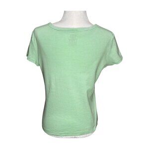 IZOD Womens Tshirt Green White Striped Preppy Size Small