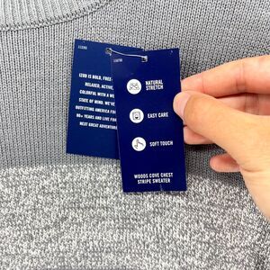 Brand new with tags IZOD 7GG Woods Cove Chest Stripe Sweater Crew Neck Med Gray Heather Color Mens Size S