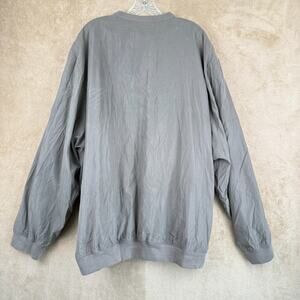 IZOD XFG performance pullover, gray V-neck golf jacket, men’s nylon blend windbreaker, lightweight athletic outerwear, mesh-lined active top, XXL functional sportswear, polyester blend shell layer, casual outdoor wind shirt, vintage golfwear piece, classic utility travel pullover