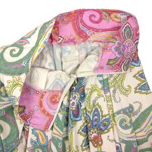 This cute Y2K era skirt from Izod features an all-over Jacobian Paisley design, pleats, quilted upper, side zipper, and 100% Rayon twill fabric. Hand washing is recommended.