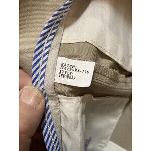 IZOD Twill Shorts, perfect for any casual occasion. With a flat front and straight fit design, these shorts have a 28-inch waist size and a 12-inch inseam. They come in a trendy beige color and are made of 96% polyester and 4% spandex, making them lightweight, easy to care for, and breathable.