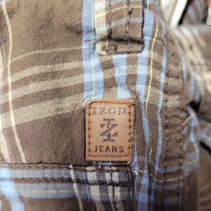 Brown plaid Izod gorpcore chino casual summer shorts. Extra buttons included. Cotton.