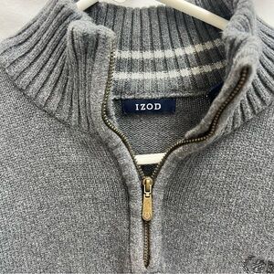 IZOD men’s 1/4 zip thick grey sweater with mock neck.