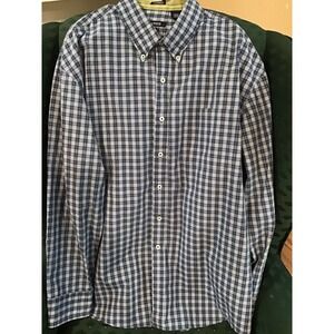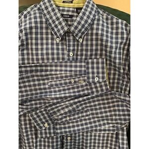 Classic Navy blue plaid Izod long sleeve button down men’s shirt in XXL.