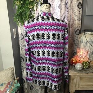 IZOD silver crest v neck long sleeve silky feel multi colored blouse