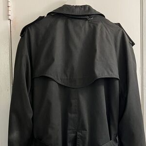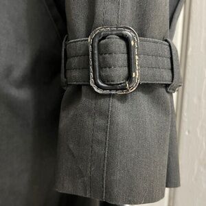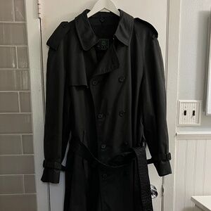 Trench coat is a 44 Long, Coat has inner removable lining of lite' weight flannel . Gun-Metal color