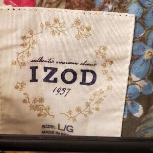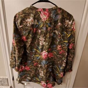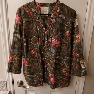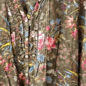 IZOD tropical floral pintucked ruffled button down shirt size large