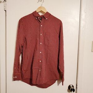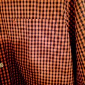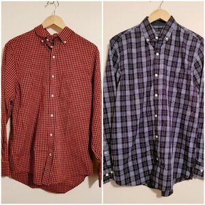 Nice quality long sleeves, button down shirts. Gently worn in good condition. Base colors are fall orange and blue. Both in a different size "Squared " print. Please refer to pictures for best description and condition verification.