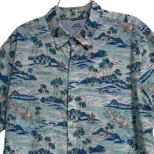 IZOD Saltwater Hawaiian Shirt Men's XL Multicolor Relaxed Button-up Toile Print