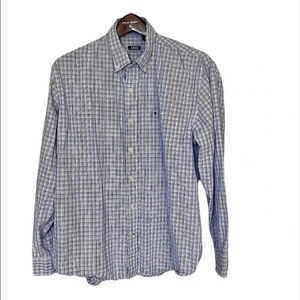 IZOD blue plaid long sleeve button down collared shirt size XL