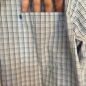 IZOD blue plaid, long sleeve, button down, front pocket, collared dress shirt size XL. In excellent used condition. Please see the measurements in the pictures.