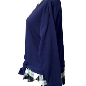 IZOD navy & plaid tie-front layer look sweatshirt Medium NWT