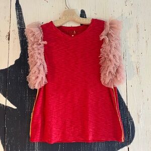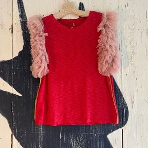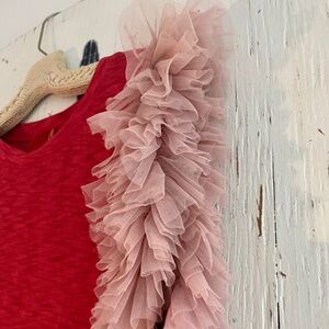 IZUSKAN IBIZA Whimsical , Red & Pink Tulle Crewneck T-shirt SZ: S/M