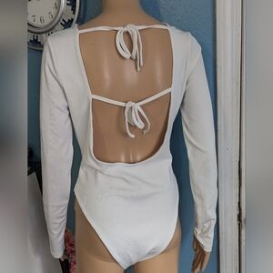 This elegant white long sleeve bodysuit is perfect for any occasion. Its sleek design offers a flattering fit, making it a versatile addition to your wardrobe.
