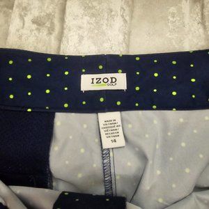 IZod Golf Bermuda Shorts Lightweight Size 14 Navy Blue Green Polka Dots