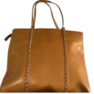 Iacucci British Tan gold Studded Leather Tote with Sturdy Handles NWOT