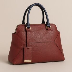 Iacucci Italian Pebbled Leather Suede Satchel Handbag Red Oxblood Blue Handles