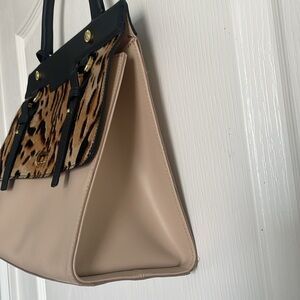 Iacucci Pink & Tan Grain Italian Leather Top Handle Crossbody Satchel Bag