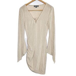 I.am.gia Amina Dress Asymmetrical Plunge Neck Tan Size L