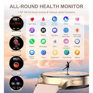 ROUND SMART WATCHES FOR WOMEN: Ultra-thin metal frame with 1.32" HD full touch color screen brings smooth touch and excellent visual experience. There are 200+ free dials for you to choose from, you can also change your favorite picture as a watch face. Comes with 3 bands, the rose gold stainless steel one is exquisite, while the pink and white silicone bands are more casual, switch between elegant and sporty, ignite your passion for fashion!