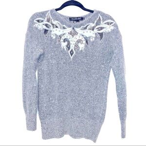 I.b. DIFFUSION SILK ANGORA rabbit WOOL EMBROIDERED SWEATER nylon lambswool SOFT