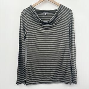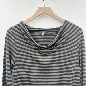 Ibex Diana Cowl Neck Long Sleeve Top 100% Merino Wool in Green Gray Size M (FLAW