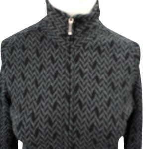 Ibex Merino Wool Full Zip Chevron Cardigan Mock Neck Sweater Size XS Black Gray