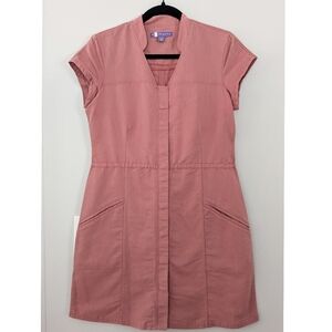 Features a flattering V-neck snap closure and convenient slant front pockets. Perfect for casual outings. Made of organic cotton and polyester.
