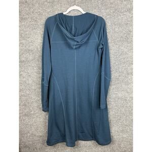 Ibex Sweater Dress Women's Large Blue Merino Wool Pockets Hooded Tunic