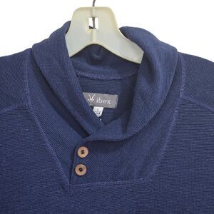 Ibex Sweater Mens Large Shawl Collar Merino Wool Blend Blue Pullover USA Outdoor