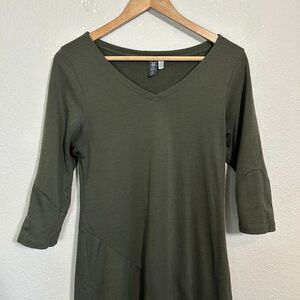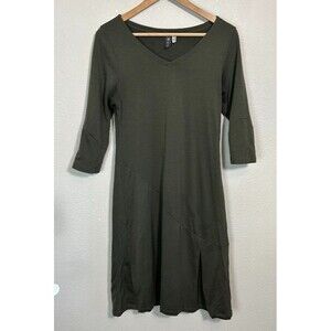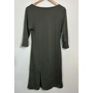Ibex Women's Merino Wool Dress Olive Green S Knee Length 3/4 Sleeve USA