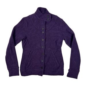 Ibex Womens Size S Carrie Merino Wool Button Up Jacket Mock Neck Pockets Purple