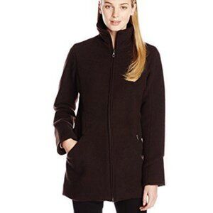 Ibex Wool Coat Peacoat Silk Long Brown Full Zip Small