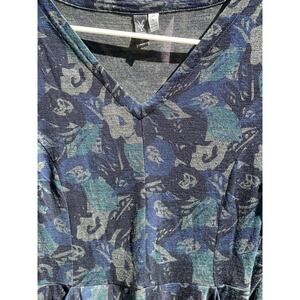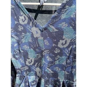 Ibex Wool V-Neck Dress Blue & Green Floral, Autumn, Size Small