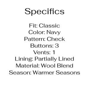 Ibiza 42R Navy Check 3-Button Sport Coat Blazer Jacket G489