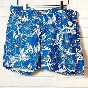 Ibiza Ocean Club Men's Swim Trunks Blue Aloha White Floral Hibiscus Size 34