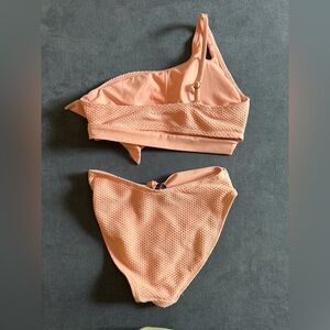 Ibiza One Shoulder Bikini Peach Textured Bow High Waisted Coverage Adjustable