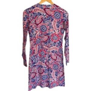 Ibkul Kylee C Navy/Red Zip Long Sleeve Crew Dress XSmall