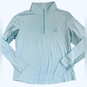 Ibkul Pinehurst Golf Quarter Zip Pullover Size Large UPF 50+ aqua white check