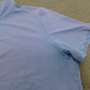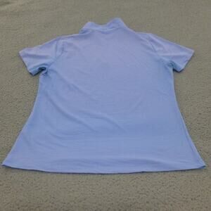 Ibkul Shirt Womens Large 1/4 Zip Polo Golf Short Sleeve Blue Wicking. Good preowned condition. Some discoloration around shoulders. See pics for measurements and details.
