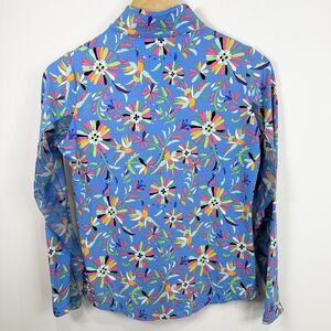 Ibkul Shirt Womens Small Blue 1/4 Zip Golf UPF50 Outdoor Pickleball Vented Bird Tropical Colorful Bright Parrot Mesh on Sleeves