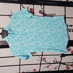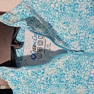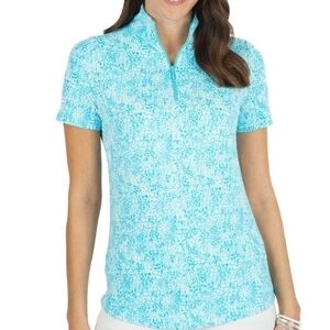 Ibkul Short Sleeve Zip Mock Neck Abstract Skin Turquoise Top Size XS NWT
