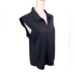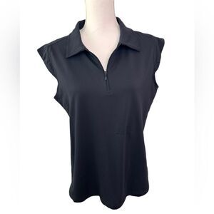 Ibkul Solid Sleeveless Polo with Quarter Zip Size L Dark Navy