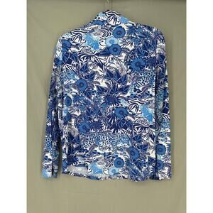 Ibkul Top Large Blue Floral Sun Shirt Icifil Vented Mesh Zip Long Sleeve UPF 50