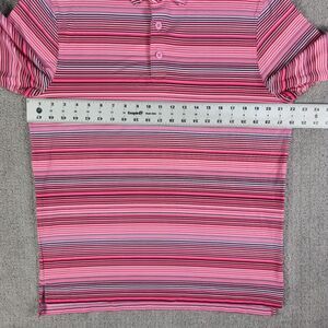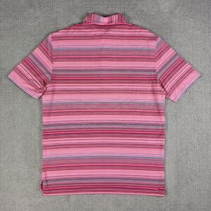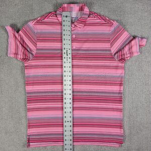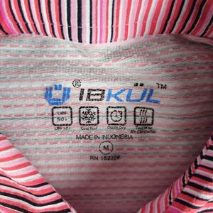 Ibkul UPF 50 Polo Shirt Mens Size M Pink Striped Golf Preppy Cooling Golfer
