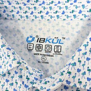 Ibkul White Bird Pattern Polo Mens Shirt Long Sleeve Golf UPF 50 Mens Size XL